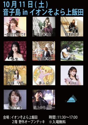 出演 : そよかぜ大根雄馬 / 菊田雪心 / 木下徹 / 植島さき/ peco / 西村加奈 / キシモトジュンイチ/ 大橋タカシ/ YAK.2 / 想ワレ/ 大島実乃 / MIU / 宮田大樹 / まちこ&みゆ / ナッキー / 竹ちなみ / 佐藤拓矢 / groundDEED / 名迫僚太 / ヴァジッサ ミンミン/ Mica / 大島keita